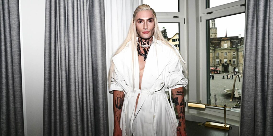Dresscodes sind zum brechen da. Oder zum neu interpretieren und kreativ werden – genau das macht die Mode ja spannend. So öffnet Yannik Zamboni die Tür zu seinem Zimmer im Mandarin Oriental Savoy komplett in Weiß gehüllt, wie man es sich von dem Designer gewohnt ist. Der Dresscode für die ZFF Opening Night lautete zwar „Black Tie“, aber Yanniks Label heißt ja nicht ohne Grund maison blanche. Für seinen Look und den seiner diesjährigen Begleitung, Dragqueen und Model Miss Fame, hat er im maison blanche Archiv gewühlt.