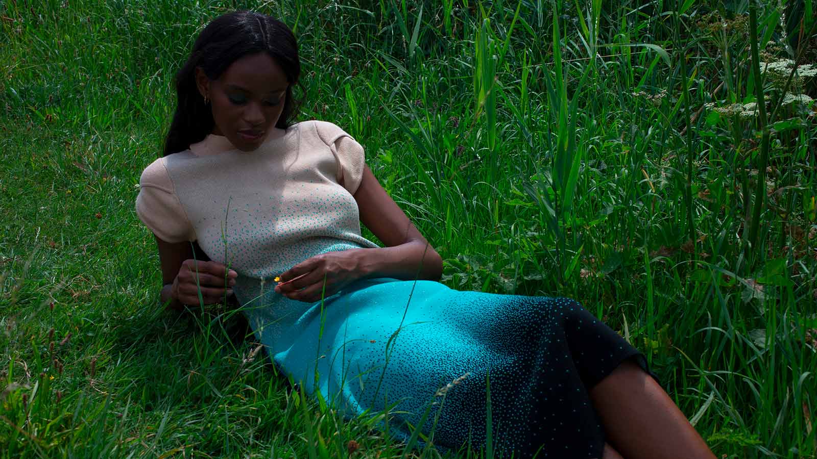 Kleid von THE_SAKEPROJECT. Schal von KUNAOFFICIAL. Sandalen von GALEANNA.
