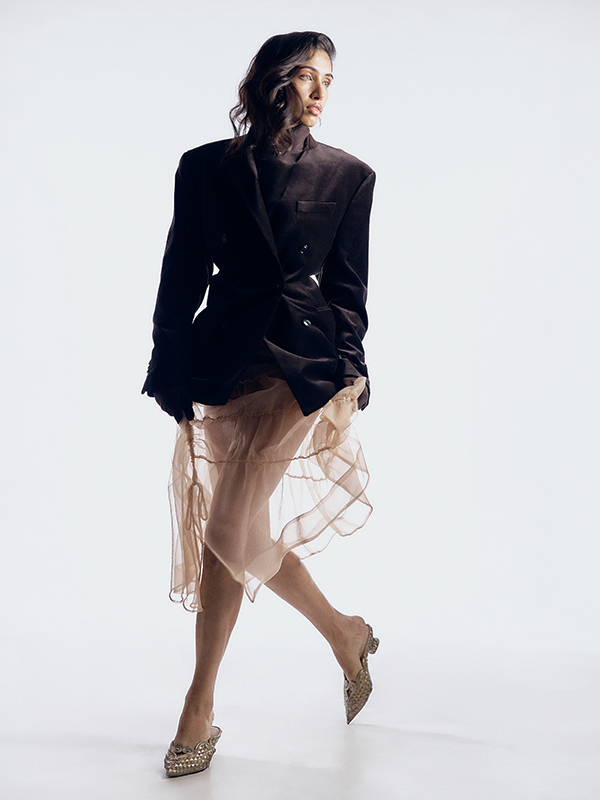 Blazer von ZARA. Rock von ZARA. Schuhe von Y/PROJECT.