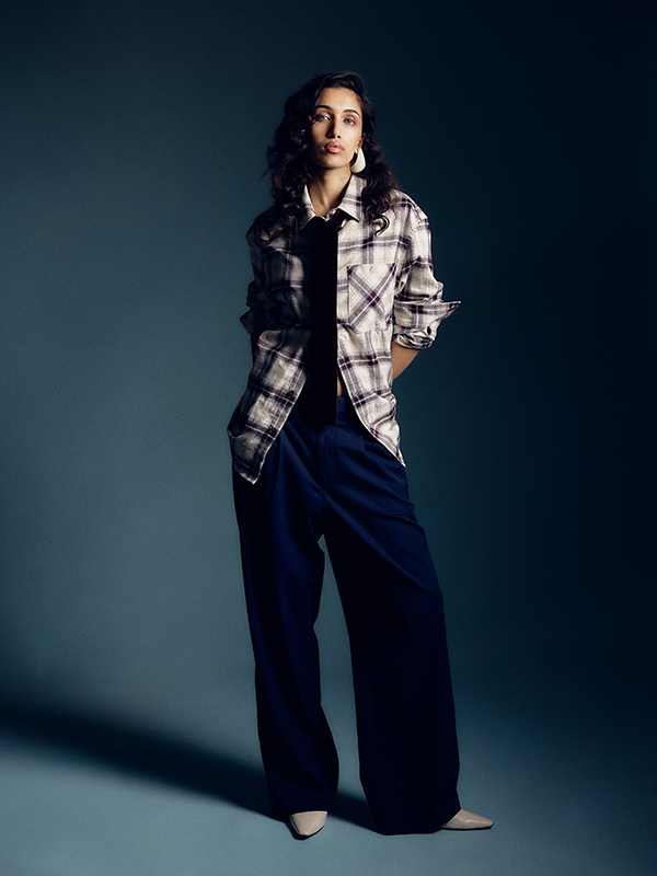 Look von ZARA X LUDOVIC DE SAINT SERNIN. Brille von GIVENCHY.
