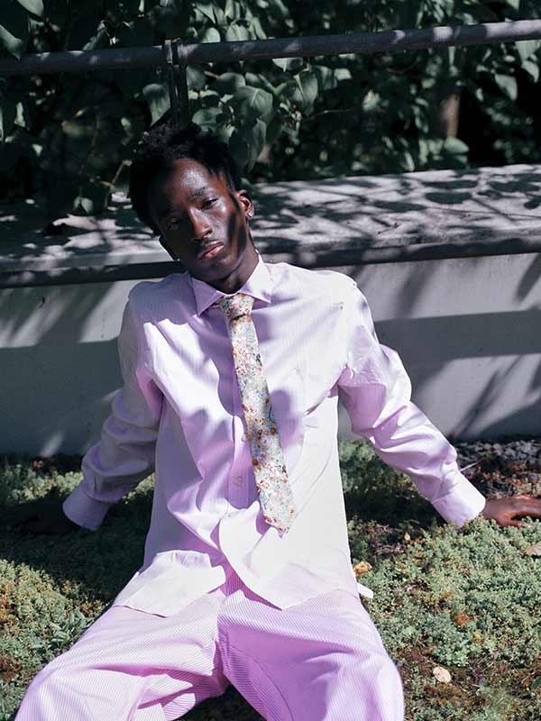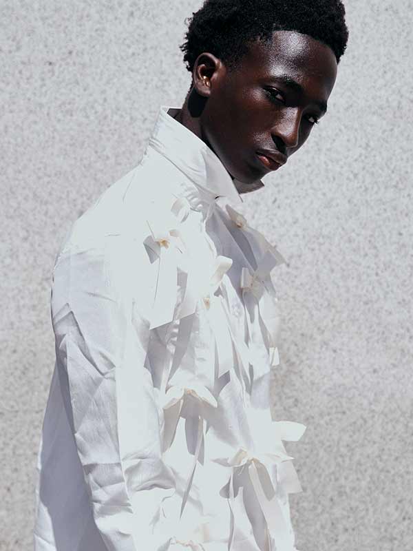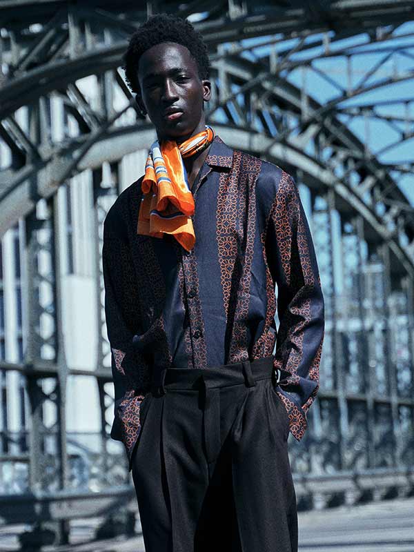 Hemd von GMBH. Lederhose von MARINE SERRE.