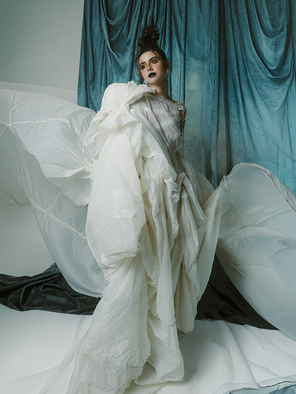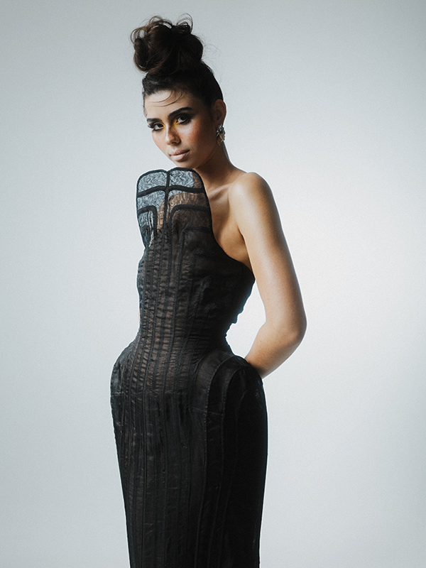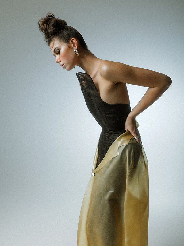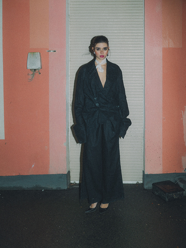 Ganzer Look von YANNIK MANTEL. Schuhe von MOSCHINO. Schmuck von ATELIER PARK 217. Nägel von LUISA SCHRÖTELER.