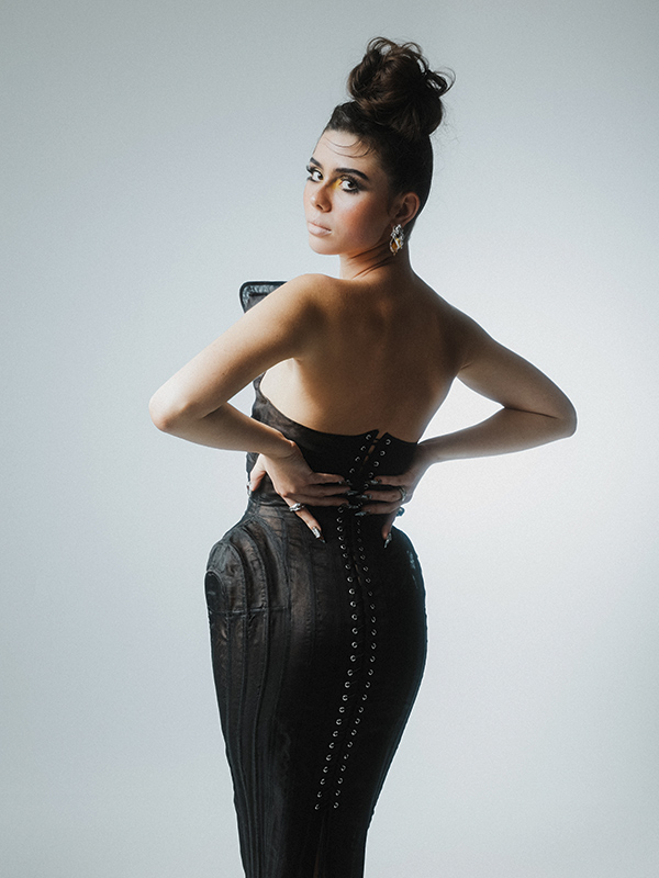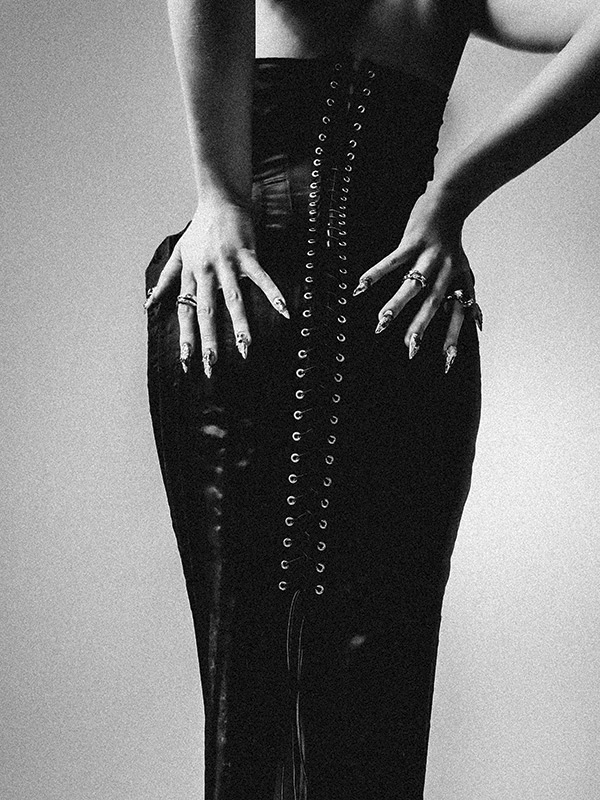 Kleid von YANNIK MANTEL. Schmuck von ATELIER PARK 217. Schuhe von WEEKEND MAX MARA. Nägel von LUISA SCHRÖTELER.