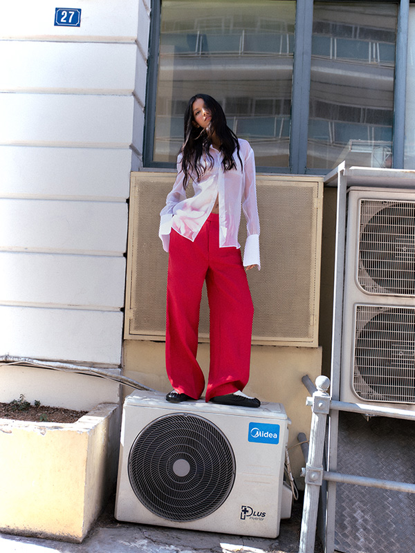 Hemd und Bralette von WOERA. Hosen von MANGO. Schuhe von ERGON.