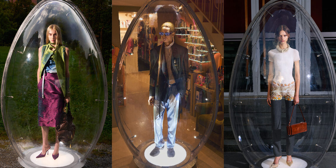 Glenn Martens hat nie ein Geheimnis daraus gemacht, dass Diesel für alle da ist – nicht nur für die Front Row. Für Spring/Summer 2026 hat er diese Vision noch weitergetrieben und 55 Looks quer durch Mailand verteilt – in übergroßen, transparenten Eiern. Die ganze Stadt wurde so zum Diesel-Runway, mit Models in Kapseln, platziert auf Plätzen, in Bars und sogar Kirchen.