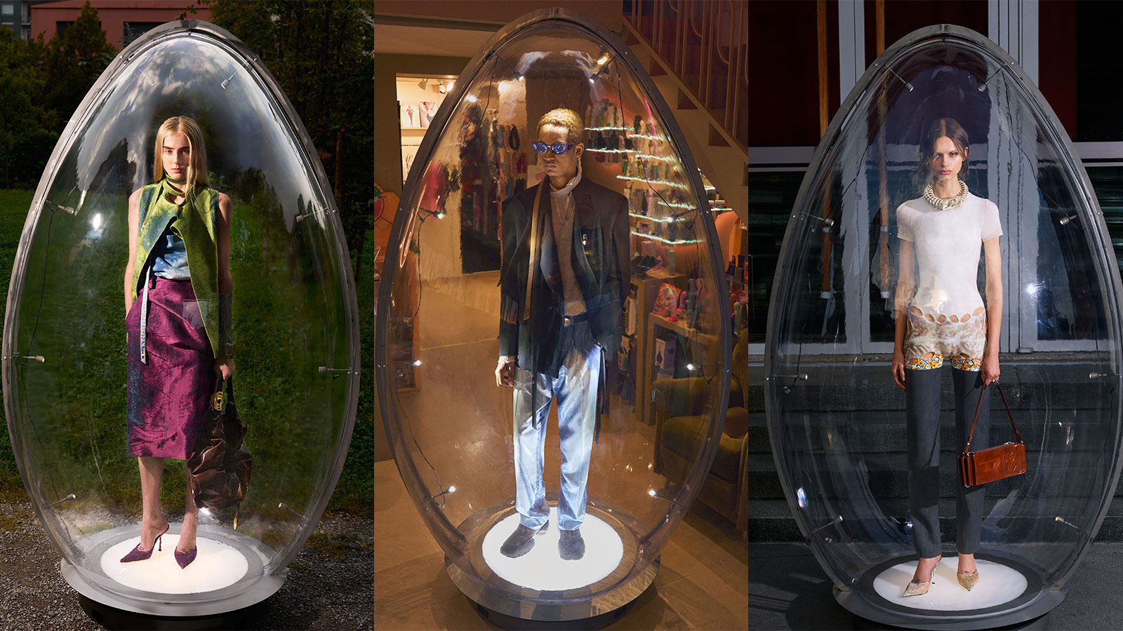 Glenn Martens hat nie ein Geheimnis daraus gemacht, dass Diesel für alle da ist – nicht nur für die Front Row. Für Spring/Summer 2026 hat er diese Vision noch weitergetrieben und 55 Looks quer durch Mailand verteilt – in übergroßen, transparenten Eiern. Die ganze Stadt wurde so zum Diesel-Runway, mit Models in Kapseln, platziert auf Plätzen, in Bars und sogar Kirchen.