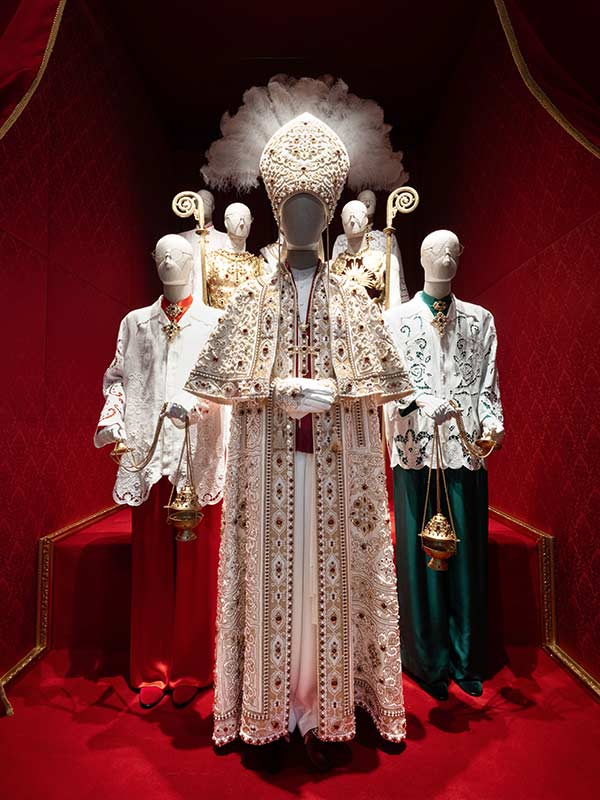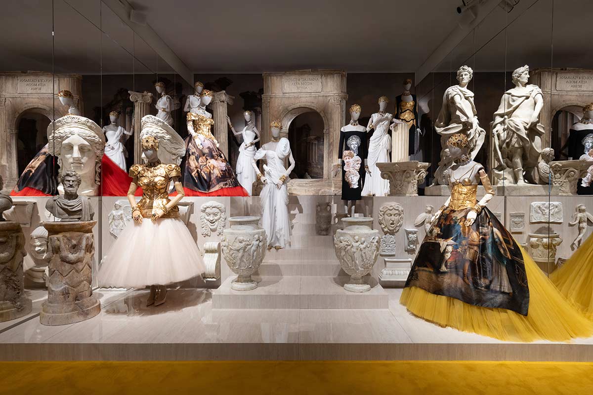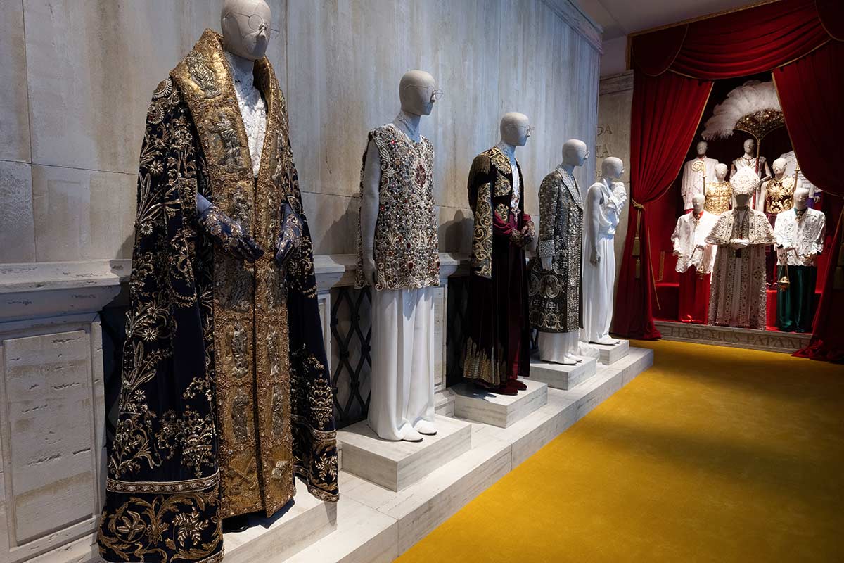 Besonders spannend an der Miami-Edition: Sie erweitert die Schau um neue, erstmals gezeigte Räume, inspiriert von Dolce & Gabbanas monumentalen Shows, die Rom 2025 ins Staunen versetzen. Hier werden kirchliche Symbolik und cineastische Visionen der ewigen Stadt in Couture übersetzt. Geschmückt mit Stickereien aus Metallfäden, Perlen, Kristallen und skulpturalen Drapierungen.