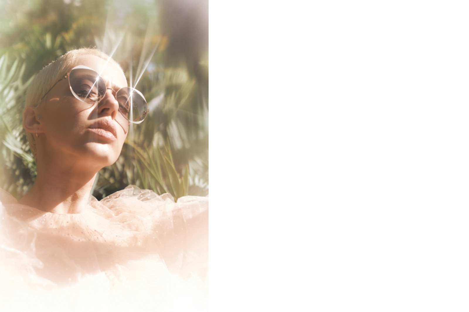 Sonnenbrille von MYKITA X HELMUT LANG. Bluse von ISABEL MARANT ÉTOILE.