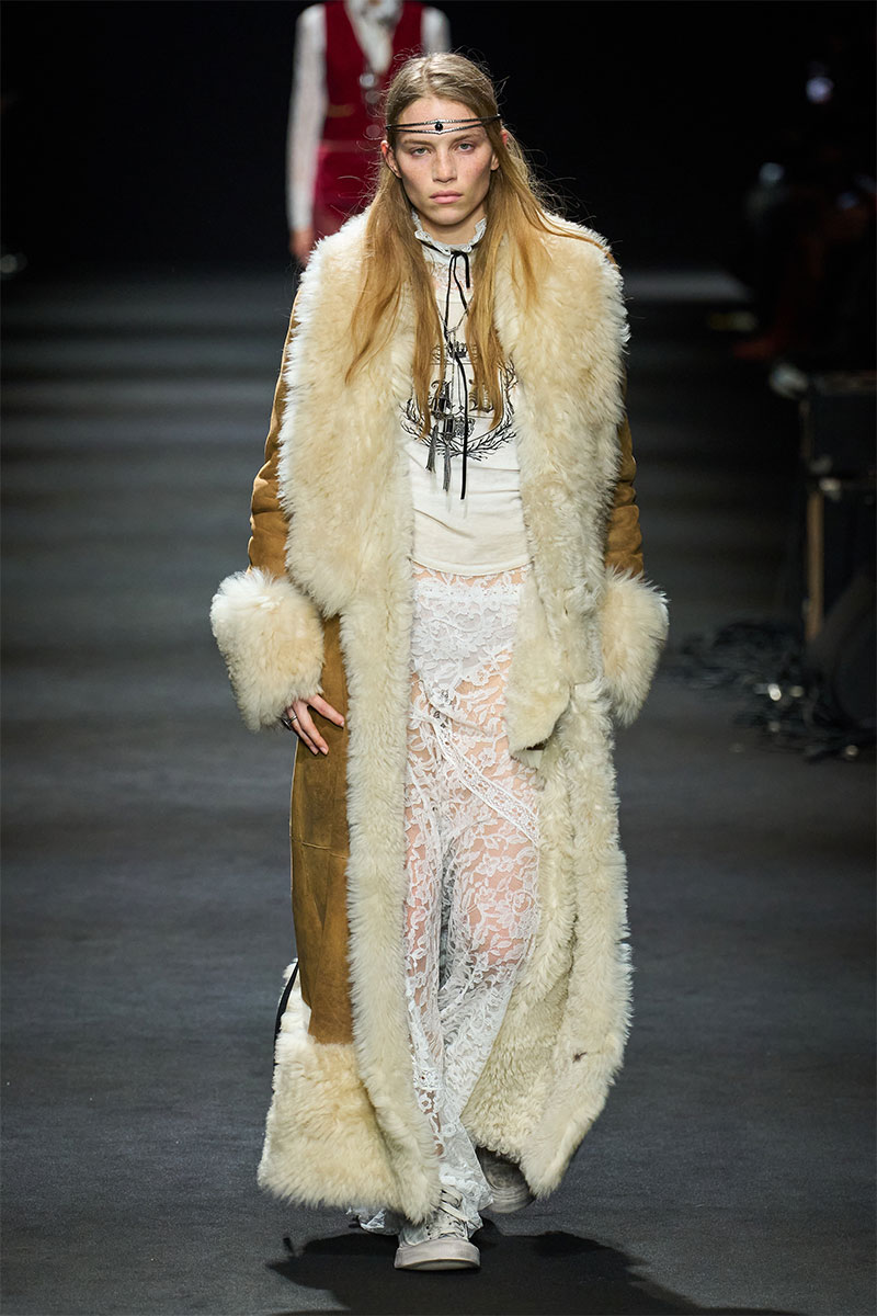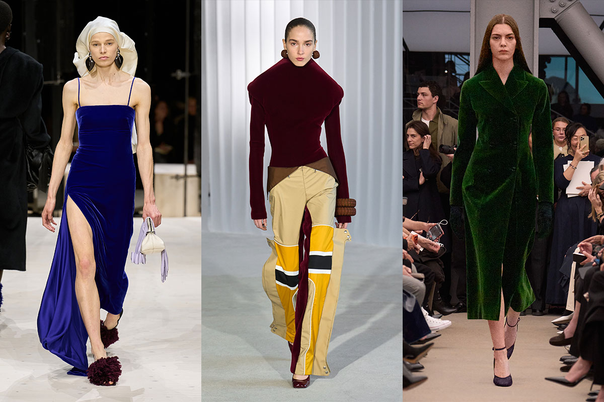 Layering explodiert bei Rabanne und Acne — praktisch, expressiv und genau kalkuliert. Schals sind grosszügig proportioniert, weil Grösse eben zählt. Velvet kommt zurück und an Peplum führt kein Weg vorbei.