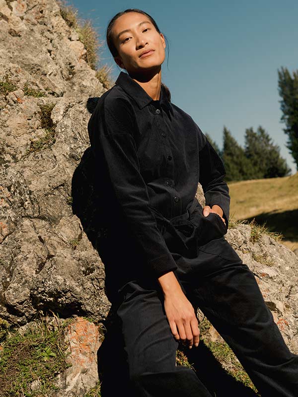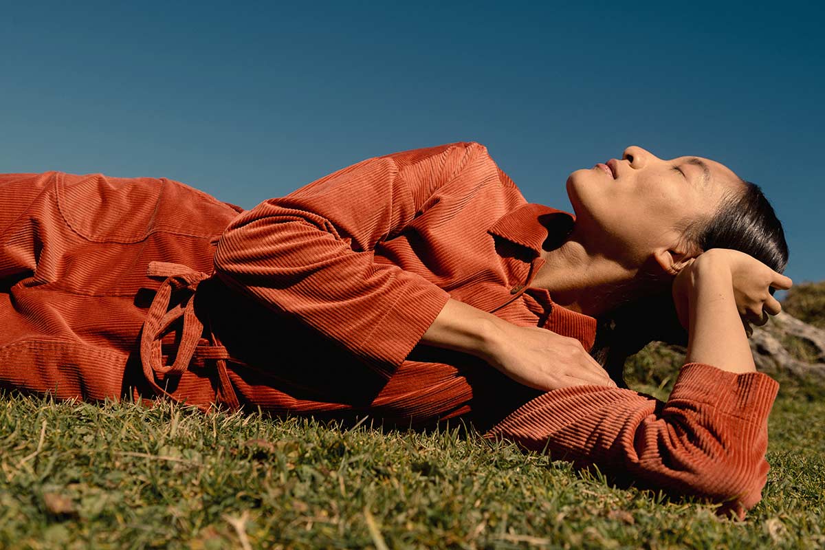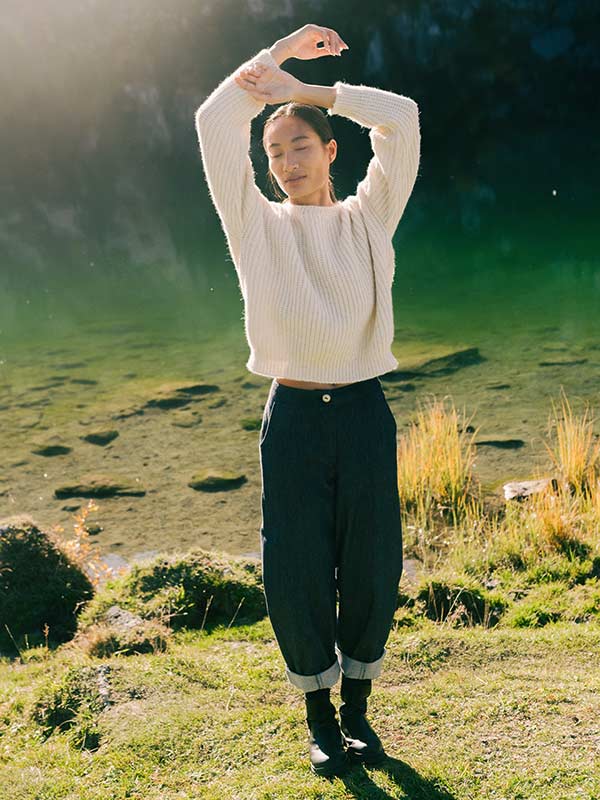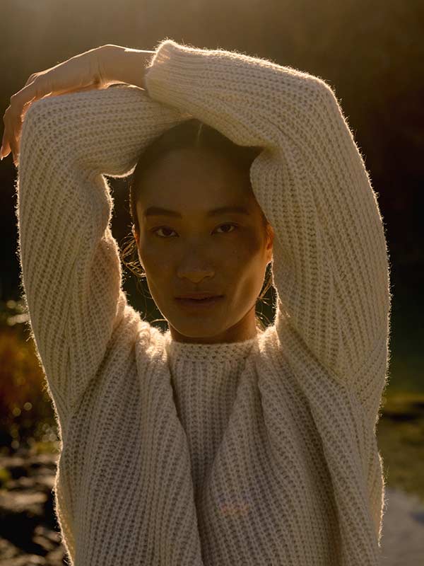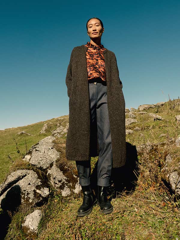 Inspiration findet Lehmann draußen: in Steinen, Holzrinden, Pflanzen und den Farben von Nebel, Regen und Licht. Diese Reduziertheit spiegelt sich in klaren Silhouetten, weiten Schnitten und liebevollen Details.