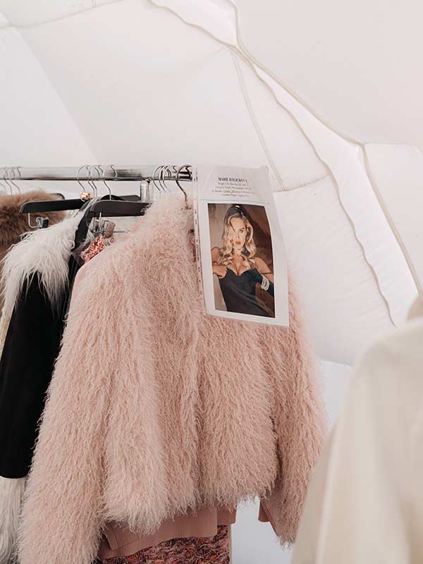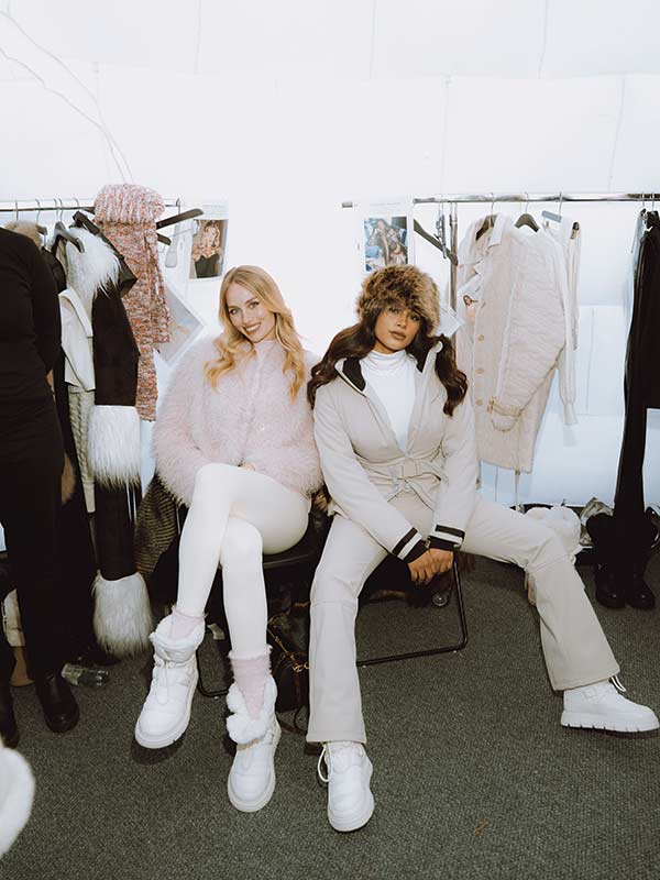Die Models traten durch eine kristallartige Eisskulptur auf und bewegten sich entlang des schneebedeckten Laufstegs, während sie die Herbst/Winter 2026 Ski Capsule sowie andere ausgewählte Fashion-Looks präsentieren. Diese seien „eine Interpretation von Winter-Glamour mit Après-Ski-Attitude“, wie der Brand aus Los Angeles erklärt. Wie das so aussieht? Ikonische Silhouetten und Signature-Pieces treffen auf eine entspannte und zugleich raffinierte alpine Ästhetik: Layering, weiche Texturen und definierte Proportionen prägen die Wintergarderobe genauso wie Kunstpelz-Styles, skulpturale Outerwear, Strick und hochwertige Finishes.