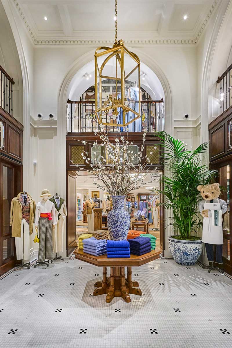 Die Art von Umgebung, in der Eleganz mühelos statt inszeniert wirkt. Die Innenausstattung folgt Ralphs charakteristischer Handschrift: warmes Holz, Vintage-Stücke, Kunstwerke, die wie Erbstücke wirken. Herrenmode bildet das Fundament im Erdgeschoss – ganz im Sinne von Ralph Laurens Ursprüngen –, während sich die Damenmode im Obergeschoss entfaltet. Die Präzision von Purple Label trifft auf die Lässigkeit von Polo, ergänzt durch Handtaschen, Uhren und Wohnaccessoires. Es soll Erlebnis und nicht nur eine weitere Boutique sein; du kaufst nicht einfach ein, sondern wirst Teil einer Geschichte.