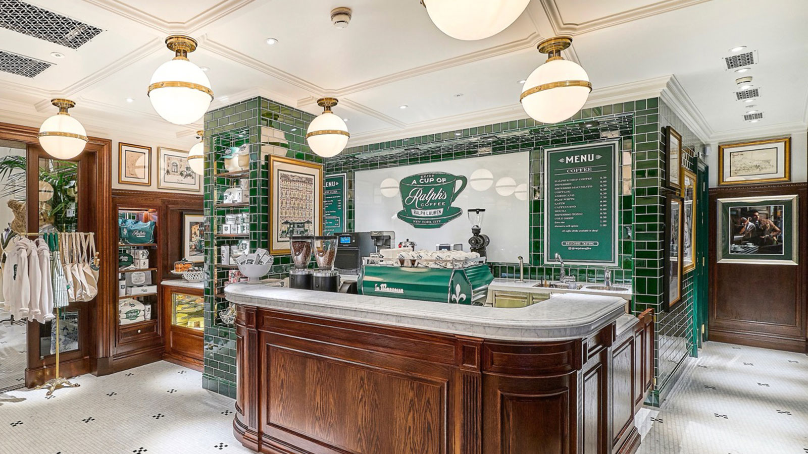 Nahtlos integriert bietet Ralph’s Coffee eigene Kaffeemischungen sowie Gebäck und unverfälscht amerikanische Desserts – inklusive New York Cheesecake. Das ist kein niedliches Extra – es geht darum, einen Raum zu schaffen, eine Welt, zu der man gehören möchte. „Stray for the blazer, stay for the latte.”
