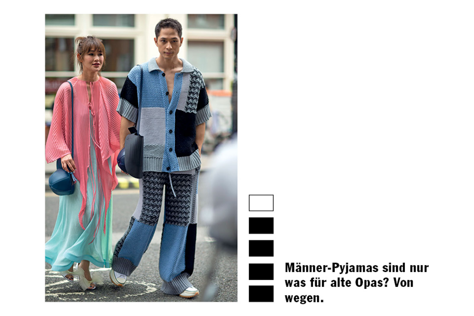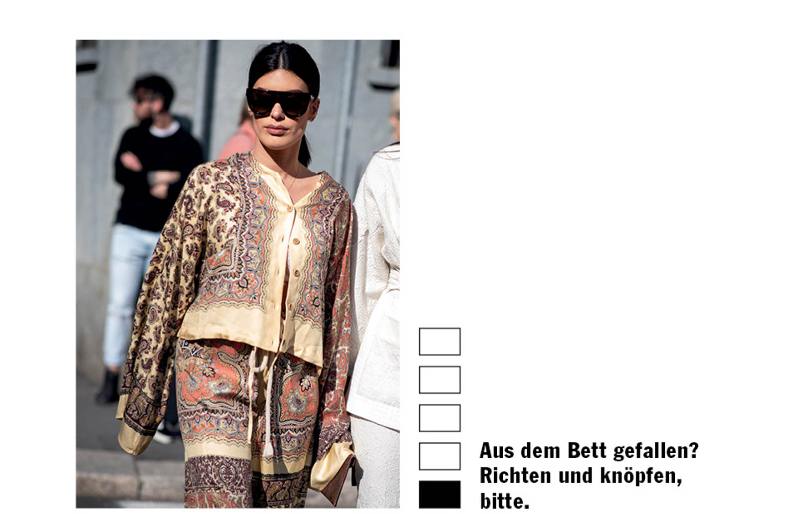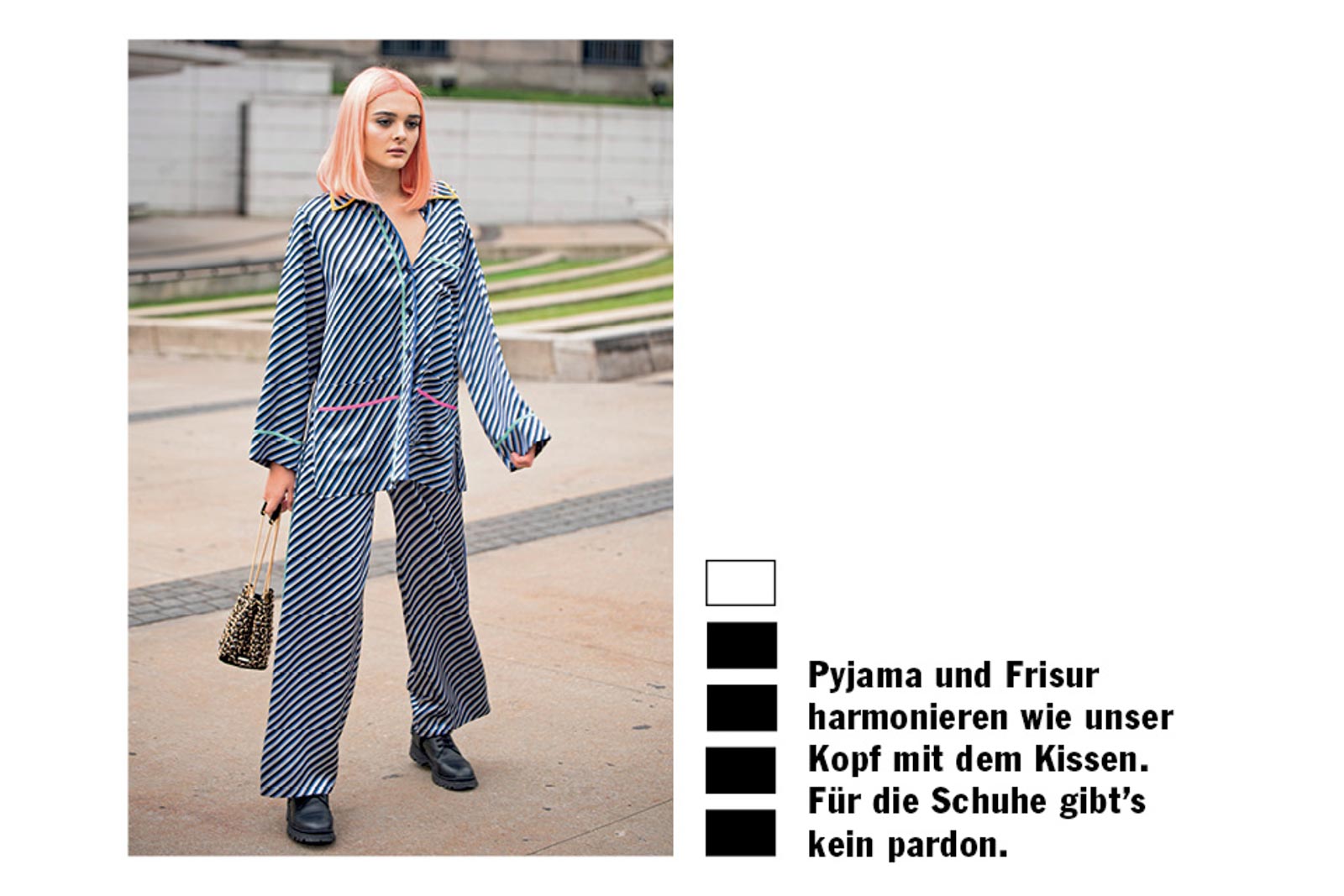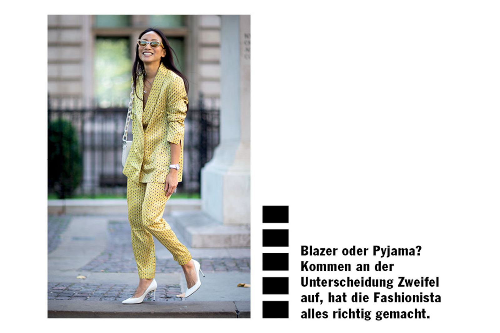 Wochenlanges Home Office und Isolation haben ihre Spuren hinterlassen. Ein Hoch auf die neue Bequemlichkeit! Vergessen sind Heels und Jeans, stattdessen haben wir es uns im Pyjama vor dem Bildschirm gemütlich gemacht. Jetzt geht’s zurück, und damit wir dabei nicht wirken wie verlorene Couch-Potatoes sagen wir, was in Sachen Pyjama-Look geht und was nicht.