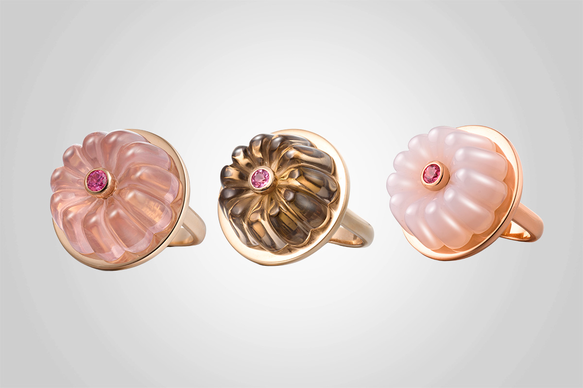 Wenn ein unbelebtes Objekt irgendwie doch menschenähnlich ist, nennt man das Anthropomorphismus. Doch was, wenn ein Objekt so lecker wie ein frisch gebackener Kuchen aussieht? Oder wie ein Zimmerpflänzchen? Irgendwer an der philosophischen Fakultät wird schon den passenden Fachbegriff dafür auf Lager haben. Unsere Antwort lautet einfach: Cora Sheibani. Die Schweizer Schmuckdesignerin schafft in ihren Stücken die perfekte Harmonie zwischen Verspieltheit und höchster Eleganz, ob Kuchen, Pflanze oder abstrakte geometrische Form.