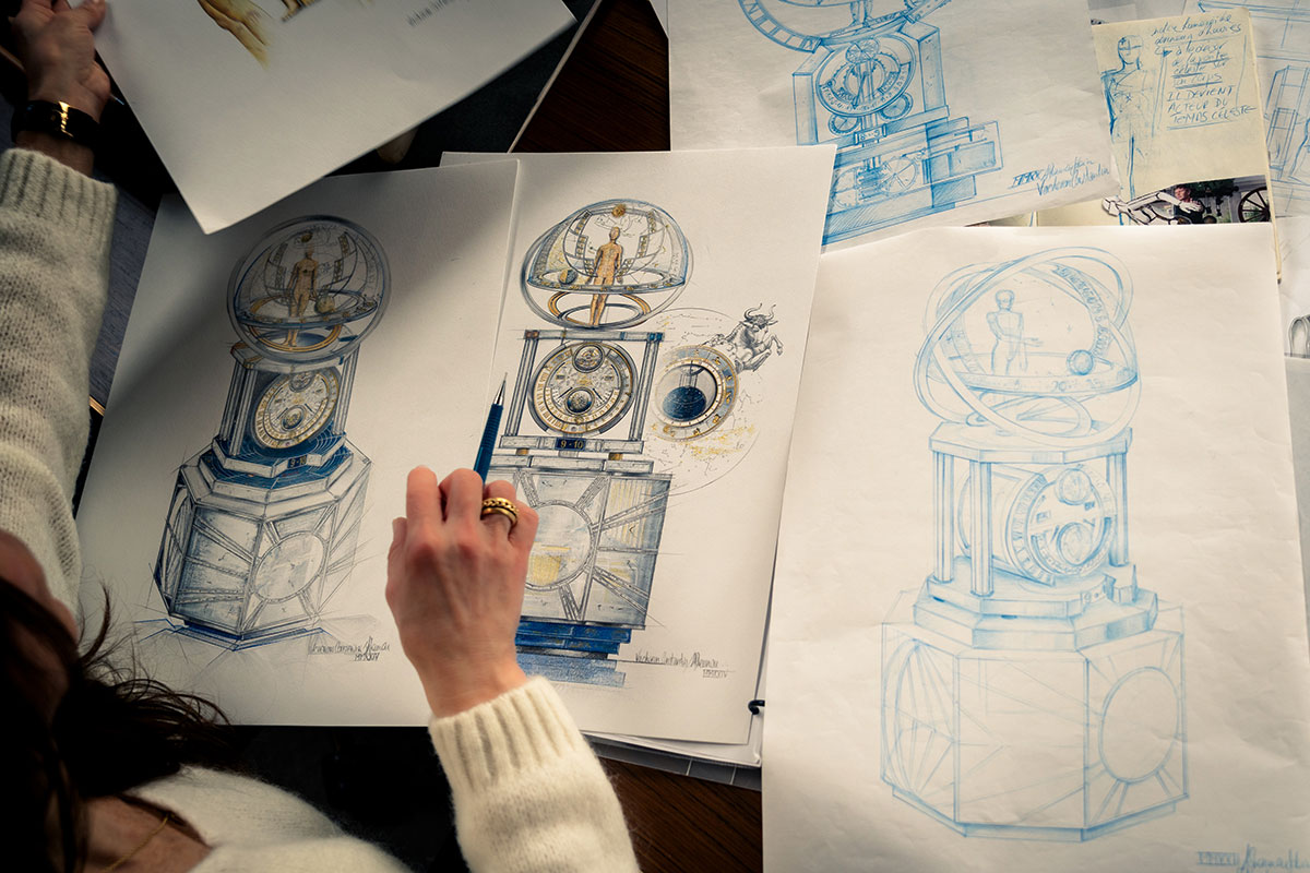Eine Frage, die man sich niemals stellen sollte, wenn man nicht die Freude im Leben verlieren will: Brauchst du das wirklich? Ruiniert in 99,9 Prozent aller Fälle sofort die Stimmung. Viel besser fragt man: Macht dich das glücklich? „La Quête du Temps“ von Vacheron Constantin, eine über einen Meter hohe Tischuhr, deren Entwicklung sieben Jahre dauerte, braucht nämlich rein rational gesehen eigentlich niemand. Umso dringender wollen wir das Prachtstück haben, denn es ist nicht nur ein Meisterwerk der Uhrmacherei, sondern zelebriert auch Handwerkskunst und Erfindergeist – Werte, die wir keinesfalls verlieren dürfen. Das aufstellbare Kunstwerk, mit integriertem Astronomen, besteht aus 6293 mechanischen Komponenten, 23 uhrmacherischen Komplikationen und drei Ebenen: der Kuppel, der astronomischen Uhr und der Basis. Sieben Patentanmeldungen im Bereich Uhrmacherei und acht Patentanmeldungen im Bereich Automaten resultieren aus dieser Haute- Horlogerie-Extravaganza.
