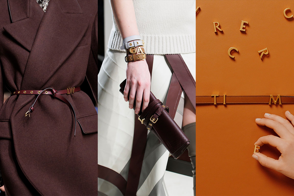 Individualität durch Handwerk: Schmale Gürtel, Leder-Cuffs und Taschen sind mit Metall-Lettern versehen, die es erlauben, die eigenen Initialen zu komponieren.