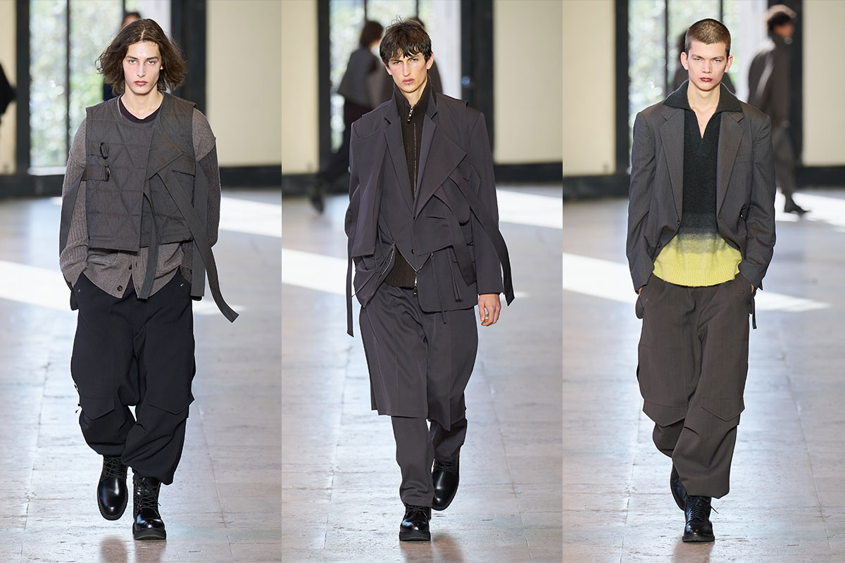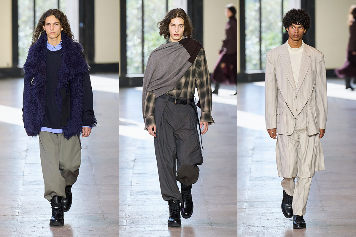Die Ujoh Herbst/Winter 2026/27 Kollektion verfeinert weiter die Elemente, die das Haus ausmachen — Präzision im Schnitt, eine erfinderische Herangehensweise an Tailoring und ein besonderes Gespür für Proportionen. Mit jeder Saison treibt Mitsuru Nishizaki diese Ideen weiter voran und experimentiert innerhalb der gestalterischen Sprache, die er für die Marke aufgebaut hat. Hier bewegen sich Struktur und Weichheit ganz selbstverständlich nebeneinander und zeigen, dass Gegensätze bei Nishizaki nicht kollidieren, sondern Energie erzeugen.