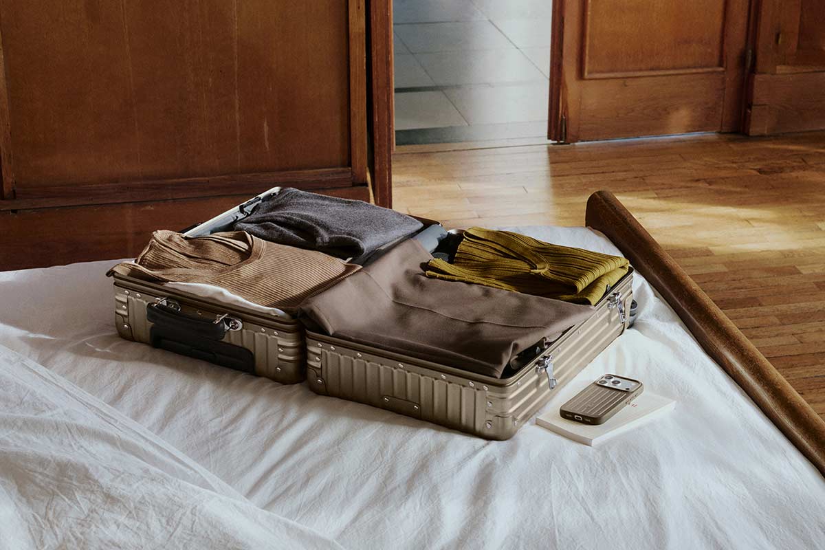 Ob man nun vier Tage oder vier Wochen verreist: Wer keine akribisch geplante Pack-Methode hat – dafür eine Tendenz, die gesamte Garderobe mitnehmen zu wollen –, braucht einen Koffer, in dem magischerweise alles Platz findet. Einen solchen findet man bei Rimowa. Inspiriert von der Luftfahrt führte das deutsche Unternehmen in den 1920er-Jahren Aluminium in die Kofferherstellung ein. Eine gute Idee, die nicht nur für Stabilität und Qualität sorgte, sondern auch verantwortlich ist für das geriffelte Design, für das Rimowa bis heute bekannt ist.