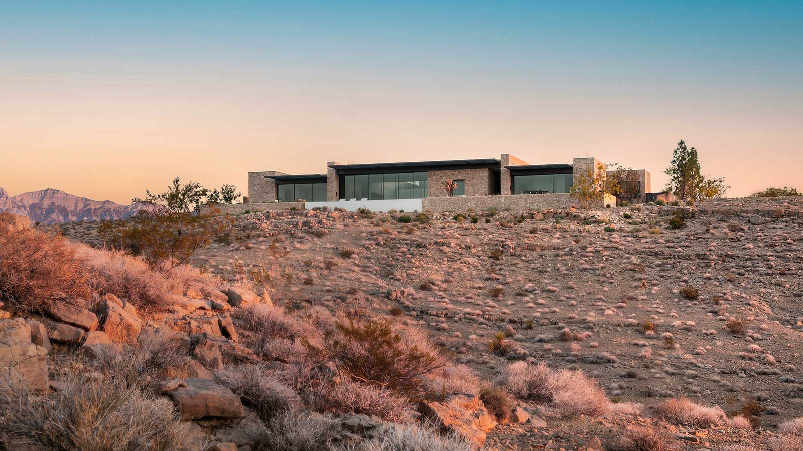 Was auf durstige, herumirrende Wüstenwandernde wie eine Fata Morgana erscheinen mag, ist echt: Am Rand des Las Vegas Valley, fernab von Casinos, Hochzeitskapellen und Elvis-Imitatoren liegt Fort 137, eine luxuriöse Residenz mit Blick auf den Red Rock Canyon. Flach, weitläufig und offen fügt sich das Gebäude nahtlos in die ewige Wüste ein.