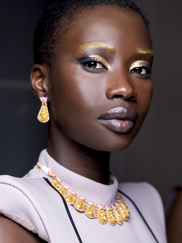 Manche träumen davon, die Hände mit mehreren Karat Gold zu schmücken. Fine-Food-Fans finden, dass sich Echtgold auch nicht schlecht auf Desserts macht. Make-up-Profis wiederum wissen: Gold gehört in erster Linie ins Gesicht. Und zwar nicht nur klassisch auf die Augenlider. Auch die Augenbrauen dürfen goldig schimmern.