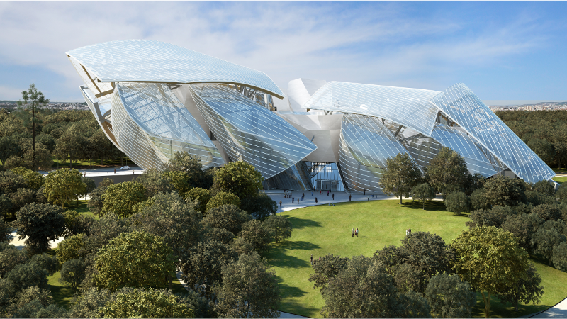Es soll ein Geschenk an die Stadt Paris sein. Ein äusserst grosszügiges, ehrlich gesagt. Rund 100 Millionen Euro haben die 11’700 Quadratmeter Ausstellungsfläche gekostet, die Louis Vuitton mitten im Bois de Boulogne in Paris aus dem Boden stampfte. Angesichts des expressiven Designs des Museums lässt sich auch relativ schnell der Architekt der „Fondation Louis Vuitton“ ausfindig machen: der kanadische Stararchitekt Frank O’Gehry. Ihm wird auch die erste temporäre Ausstellung im von Louis Vuitton gesponserten Museum gewidmet. In den restlichen Galerien werden nach der Eröffnung am 27. Oktober zeitgenössische Ausstellungen mit Werken aus dem 20. und 21. Jahrhundert und Louis Vuittons hauseigene Kunstsammlung beherbergt. In den 160 vergangenen Jahren hat sich in der Schatzkammer des Luxuslabels bestimmt einiges an kostbarer und sehenswerter Kunst angesammelt…