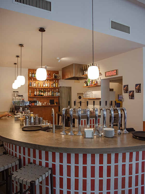 Ein Stück Wipkinger Geschichte: Seit den 1930er Jahren prägt das Belmondo die Röschibachstrasse. Nach der Pandemie wurde das Lokal 2023 neu gestaltet: blaue Polster, große Pflanzen und Naturwein auf der Karte – aber die ikonischen, großen Bogenfenster sind geblieben.