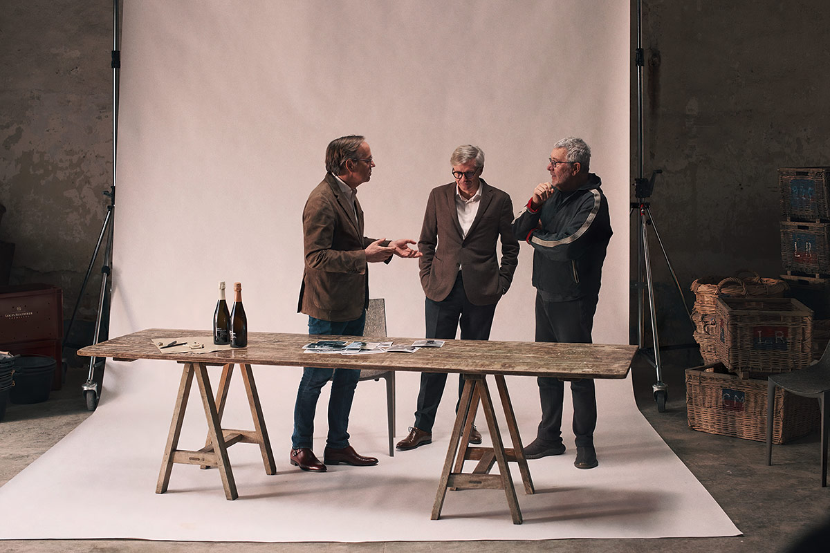 PS: Ja, das war sehr interessant, denn ich wusste absolut nichts über die Champagnerherstellung. Ich trinke ihn, aber ich hatte keine Ahnung, wie man ihn besser machen könnte. Die meisten Leute trinken ihn und sagen: „Oh, er ist gut.“ Aber ich, nun ja, ich musste einem Meister seines Fachs, dem Kellermeister, meine Vorstellungen erklären, was nicht einfach war. Das Schöne war, dass ich im Französischen jemand bin, der sehr präzise die richtigen Worte wählt. Es gibt sogar einen Filmausschnitt darüber, wie ich sage: „Ich möchte es wie Stahl.“ Und der Kellermeister steht mit einem Zettel vor mir und notiert: „Stahl, das bedeutet…“ Ich wollte es „hyper scharf“, was wiederum „saurer“ bedeutet. Jedes Wort, das ich sagte, wurde chemisch übersetzt und zugeordnet. Wir haben eine sehr präzise, produktive, quasi „diagonale“ Sprache erfunden, die für alle klar war. Das Faszinierende war, als wir vor 20 Jahren den ersten Tropfen probierten, waren alle erstaunt. Nicht, weil er gut oder schlecht war. Sondern weil er genau das war, was ich erklärt und der Kellermeister verstanden hatte. Es war schockierend, auf eine gute Art. Wir haben etwas unglaublich Perfektes entdeckt. Es ist immer die alte Lehre: „Weniger ist mehr.“ Je mehr man wegnimmt, desto besser wird es. Es ist wie die Quadratwurzel, man teilt und teilt. Das tun wir. Wir nehmen weg, teilen, teilen, teilen. Und was wir heute haben, besonders bei diesem Champagner, ist das absolute Minimum von allem.