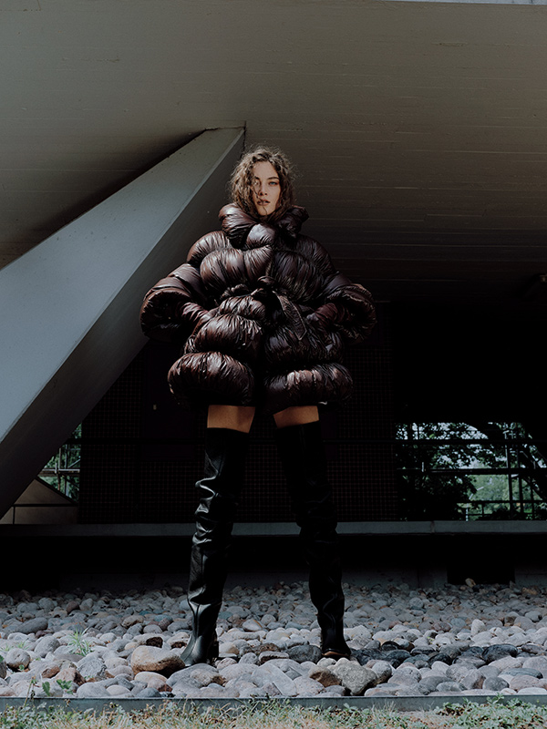 Jacke von DIESEL. Rock von JUUN.J. Stiefel von SPORTMAX.