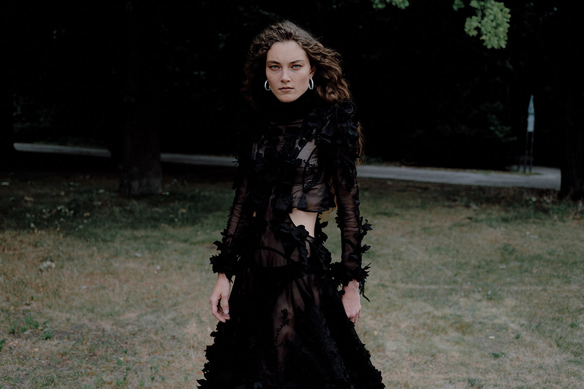 Kleid von ZIMMERMANN. Schmuck von SWAROVSKI.