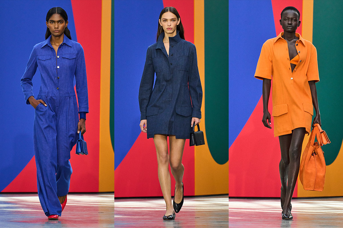 Denim bekommt in Kriemlers Händen neue Würde. Indigoblaue Jumpsuits und scharf geschnittene Minikleider verleihen Alltagsstoff die Ruhe und Präzision von Couture. Organza- und Seidenlagen bringen eine subtile Leichtigkeit, ihre Transparenz ist architektonisch gedacht, nicht verführerisch.