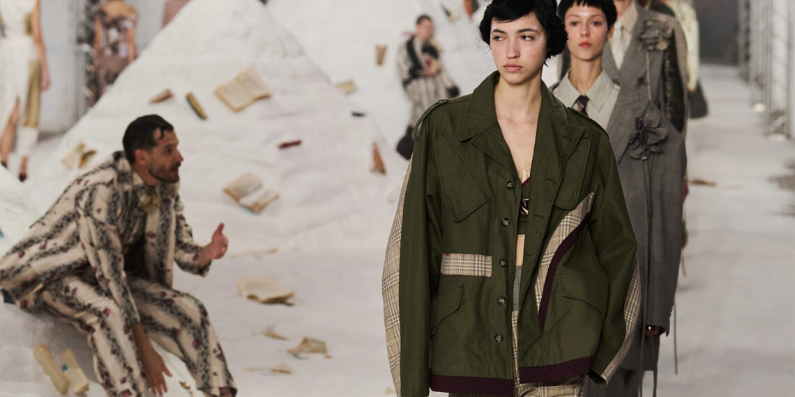 Antonio Marras macht seine Runways schon lange zu Theaterbühnen – seine Shows sind immer intim, seine Kollektionen tief verwurzelt im Storytelling und immer mit einer Prise Romantik. Für SS26 hat er diese Vision weitergeführt: Das Set war inspiriert von den Salzfeldern von Alghero auf Sardinien. Der Laufsteg entfaltete sich zwischen weißen Dünen, überzogen mit Büchern, als wären Seiten über die Landschaft verstreut. Manche Models liefen klassisch, andere spielten Momente des Theaters – rennend, innehaltend, kletternd, Seiten aus Büchern reißend wie verletzte Liebende – eine Szene voller Emotion, die die Kollektion zum Leben erweckte. Genau so sollte Mode sein.