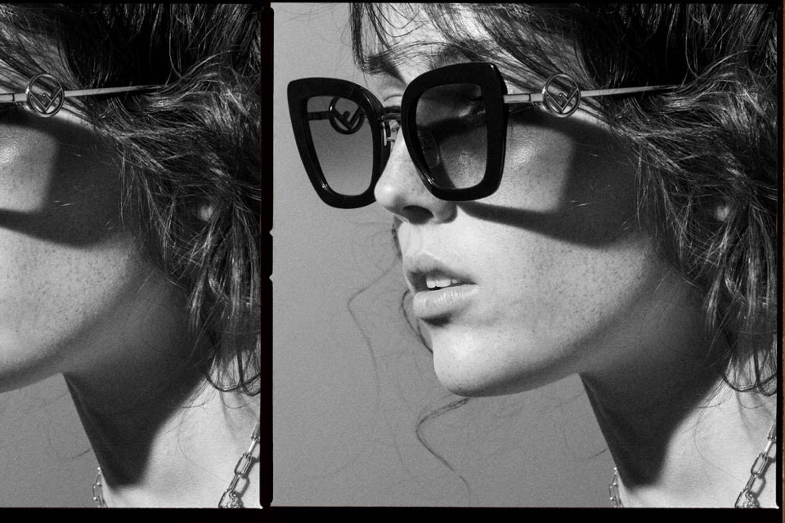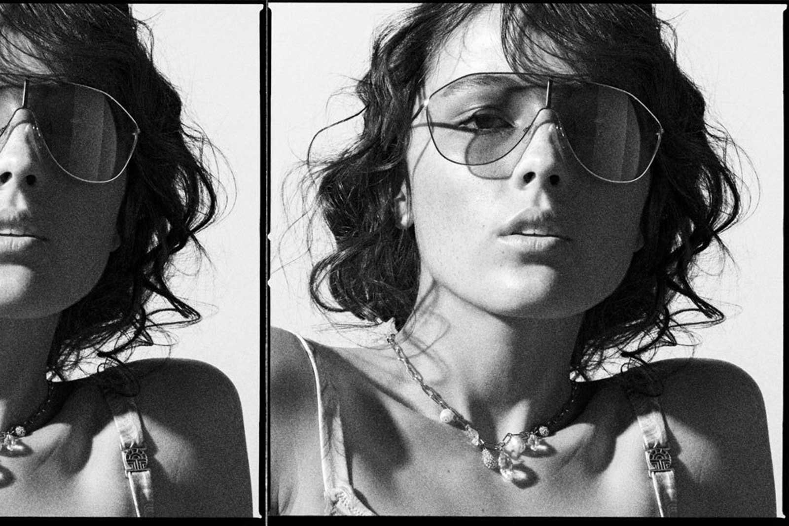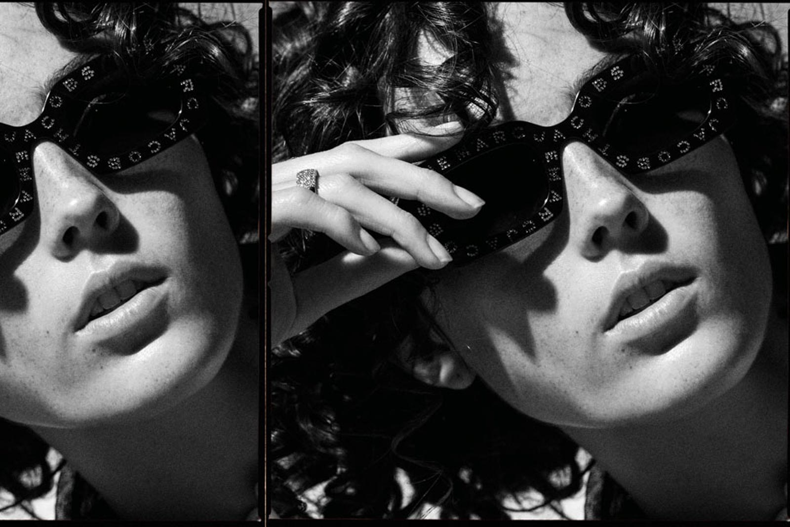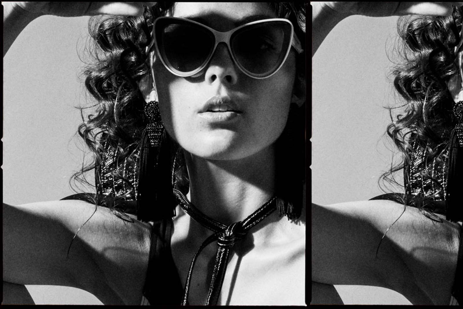 Brille von FENDI. Badeanzug von FÉRAUD. Kette von SWAROVSKI.