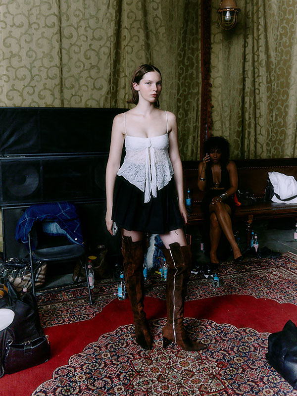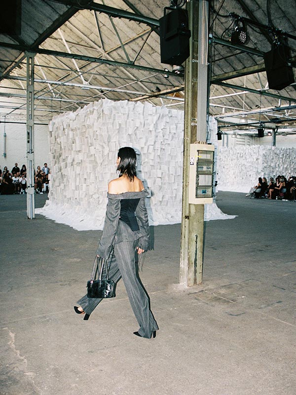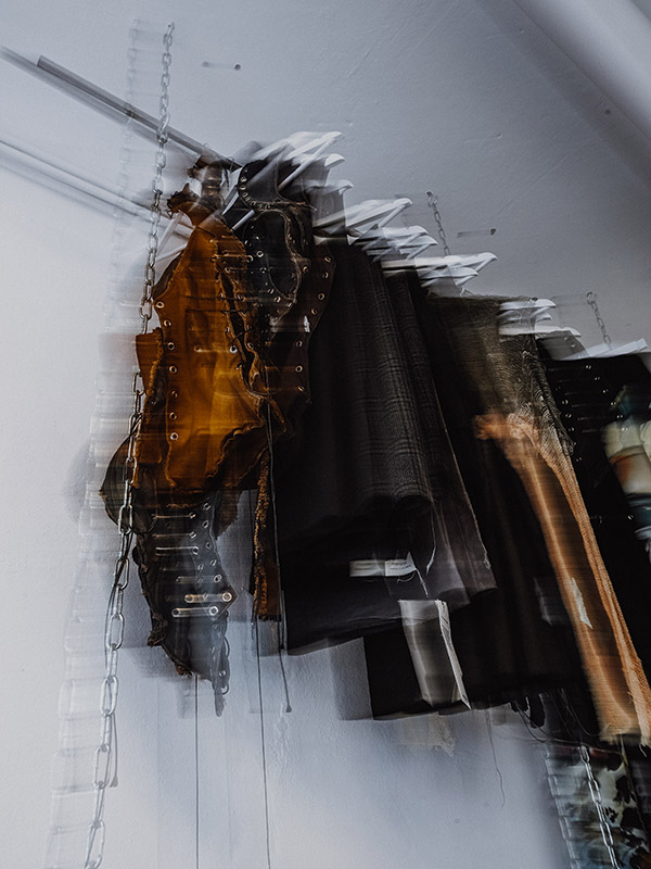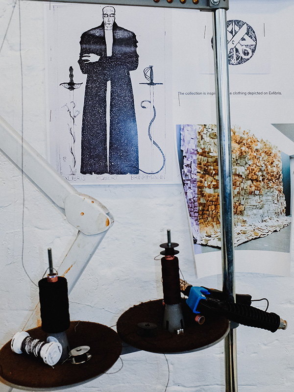 Die vergleichsweise ruhigere Show „Ex Libris“ an der diesjährigen Berlin Fashion Week hat ihren guten Grund. Einerseits ist das Kollektiv gewachsen und routiniert geworden. Statt bis morgens um vier bleibe Johann nun, sobald die Show näher rückt, vielleicht noch bis Mitternacht. Und Julius erklärt: „Wir haben Aufmerksamkeit bekommen, jetzt wollen wir das Augenmerk wieder auf die Kleidung richten. Denn darum geht es doch eigentlich.“