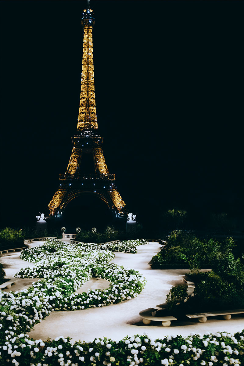 Unter dem glitzernden Eiffelturm entfaltete Anthony Vaccarello eine Szenerie von atemberaubender Präzision und Schönheit. Ein geschwungener Laufsteg, gesäumt von dichten Bänken weißer Hortensien, leuchtete im Gold des Pariser Nachthimmels. Es war monumental, sinnlich, fast absurd schön – Mode in architektonischer Vollendung. Saint Laurent bewies: Kontrolle kann genauso verführerisch sein wie Exzess. Die ganze Show von Saint Laurent SS26 findest du hier.