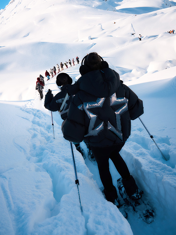 JG: Der Nordstern steht im Mittelpunkt der Marke und ist Teil unserer DNA – eine Konstante seit der Gründung der Marke in den Achtzigerjahren. Er stammt aus den Tagen, als wir ExtremskifahrerInnen in Grönland filmten, und ist ein Symbol, das sich durch alles zieht, was wir tun. Er steht für Richtung, Fokus und die Idee, seinen eigenen Weg zu finden. Für diese Zusammenarbeit war es naheliegend, ihn in den Vordergrund zu stellen – als Erinnerung daran, wo wir angefangen haben und wohin wir gehen.