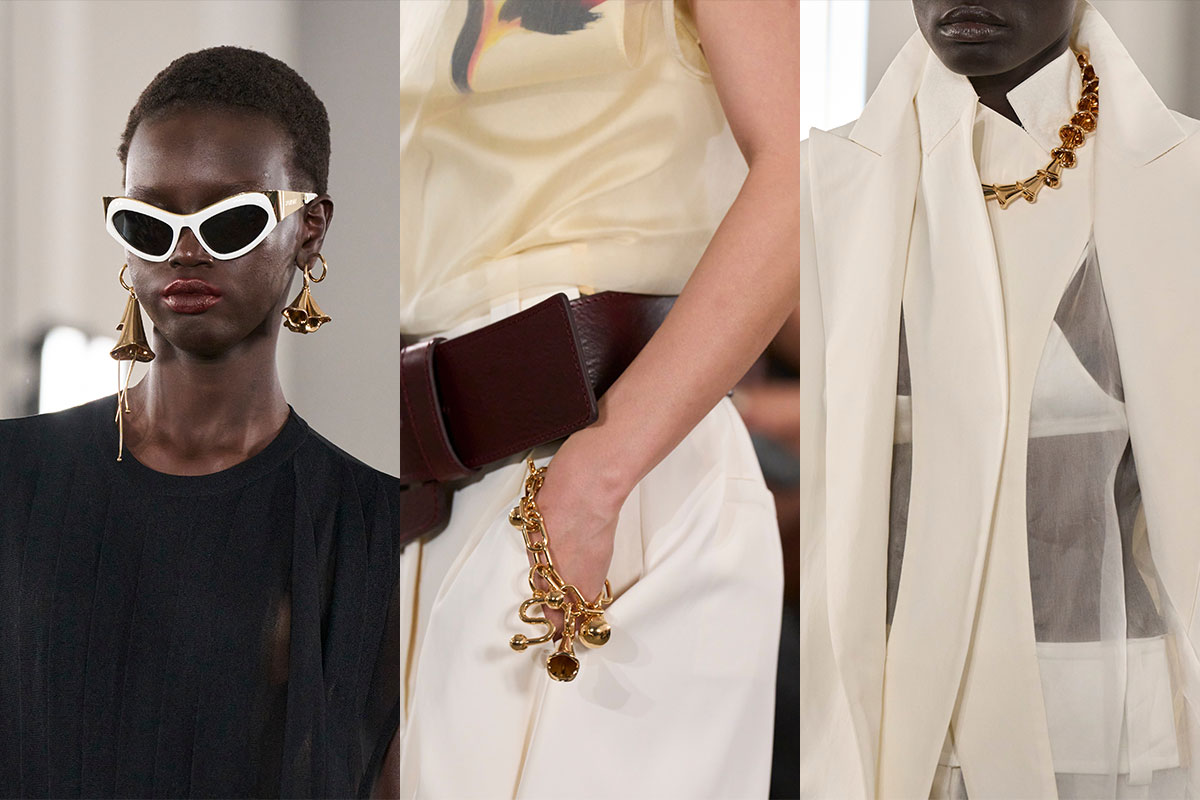 Accessoires sorgen für Witz. Goldene Charms und kleine Glöckchen baumeln an Ohrringen, Armbändern und Ketten, klingen sanft beim Gehen – ein detailverliebtes, verspieltes Statement.