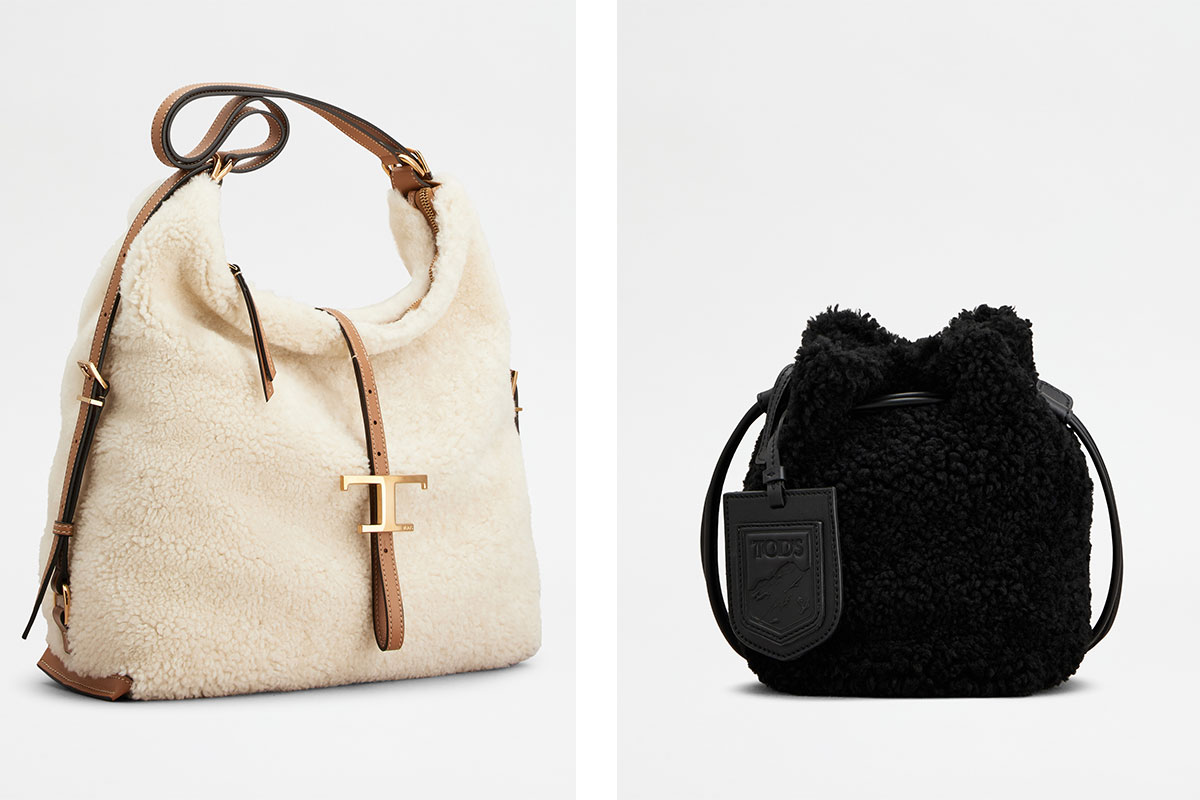 Shearling findet sich auch bei den Accessoires wieder: Die Tod’s Timeless T – Bag erscheinen in winterlichen Varianten – von praktischen Totes bis hin zu kompakten Micro-Buckets.