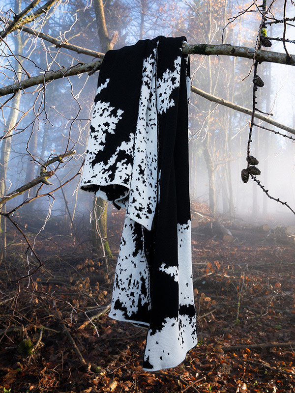 Anhand von Bildern und der Oberflächentextur der Steine entstand das Muster, das sich auf den drei Pieces wiederfindet. Jedes der drei Stücke ist auf 300 limitiert. Auch damit setzt die Kollektion ein klares Zeichen für die Nachhaltigkeit. Die Materialien sind zu hundert Prozent abbaubar. Alles kann laut Andreas Fehr von Neumühle im schlimmsten Fall wieder von der Erde aufgenommen werden. So wird das Prinzip der Kreislaufwirtschaft umgesetzt.