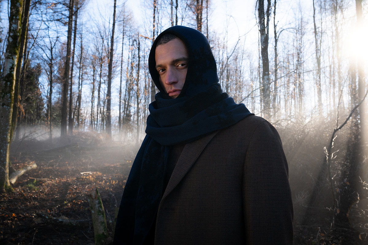 Der Kollaboration entspringt eine winterliche Capsule Collection, mit der man die verbleibenden Wintermonate durchstehen kann. Ein Balaklava, ein Schal und ein T-Shirt tragen die unverkennbare kreative Handschrift von Yannik Zamboni. Als Designinspiration dient der Findling. Findlinge werden von Gletschern transportiert und sind so stille Zeugen der Eiszeiten – und der klimatischen Veränderungen unseres Planeten. Yannik reiste ins Wallis, um sich solche steinigen Giganten in echt anzusehen. Auch in Zürich gibt es einen Findling: Im Showroom des Zürcher Labels Neumühle ist der Stein nicht nur ein beeindruckendes Kunstwerk der Natur, sondern auch eine Erinnerung an den Klimawandel.
