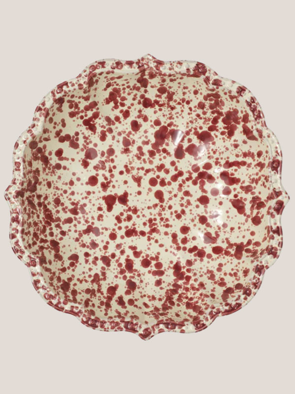 Diese kunstvoll getupfte Servierschale wirkt wie direkt aus einer mediterranen Villa. Ein edles Stück, das dem Alltag etwas Dramatisches verleiht.