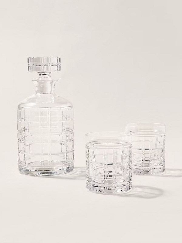 Schlichter Luxus: Das Geschenkset Hudson besteht aus einer Karaffe sowie zwei Tumblern und ist mit dem legendären Ralph Lauren Tartan Muster verziert. Ein besonderes Goodie für Whisky-TrinkerInnen.