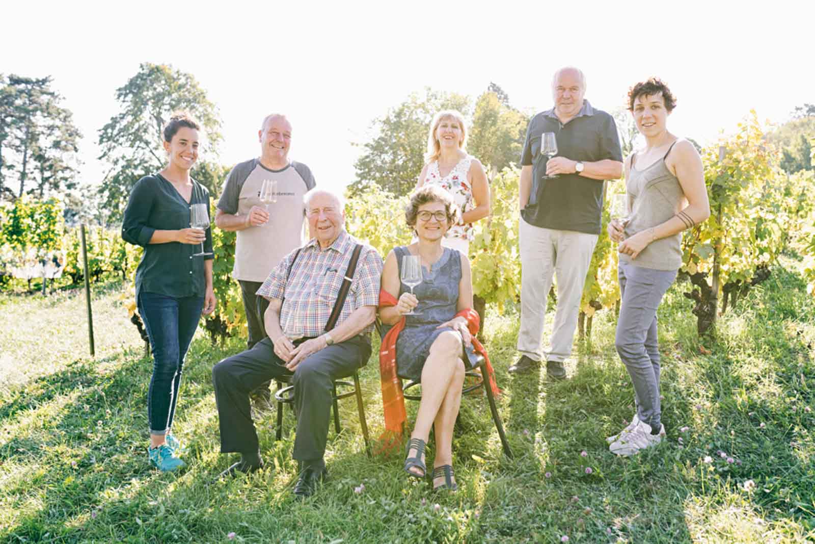 Man könnte sagen, durch die Adern der Familie Cruchon fließt schon seit jeher Wein. 1976 gründet Henri Cruchon als Sprössling einer Winzerdynastie schließlich die eigene Domaine. Die Söhne stoßen hinzu, deren Frauen und irgendwann die Enkel. Und so sprudelt der Wein in der Nähe des Genfersees heute in der dritten Generation und so bewusst umweltschonend, dass die Tropfen der Cruchons gar das Demeter-Siegel tragen. Sechzehn Rebsorten gedeihen hier mosaikartig auf mehreren Rebbergen, mehrheitlich biodynamisch produziert, vor Ort gekeltert und in die Flaschen gefüllt, aus denen Gäste den Wein später genießen dürfen.