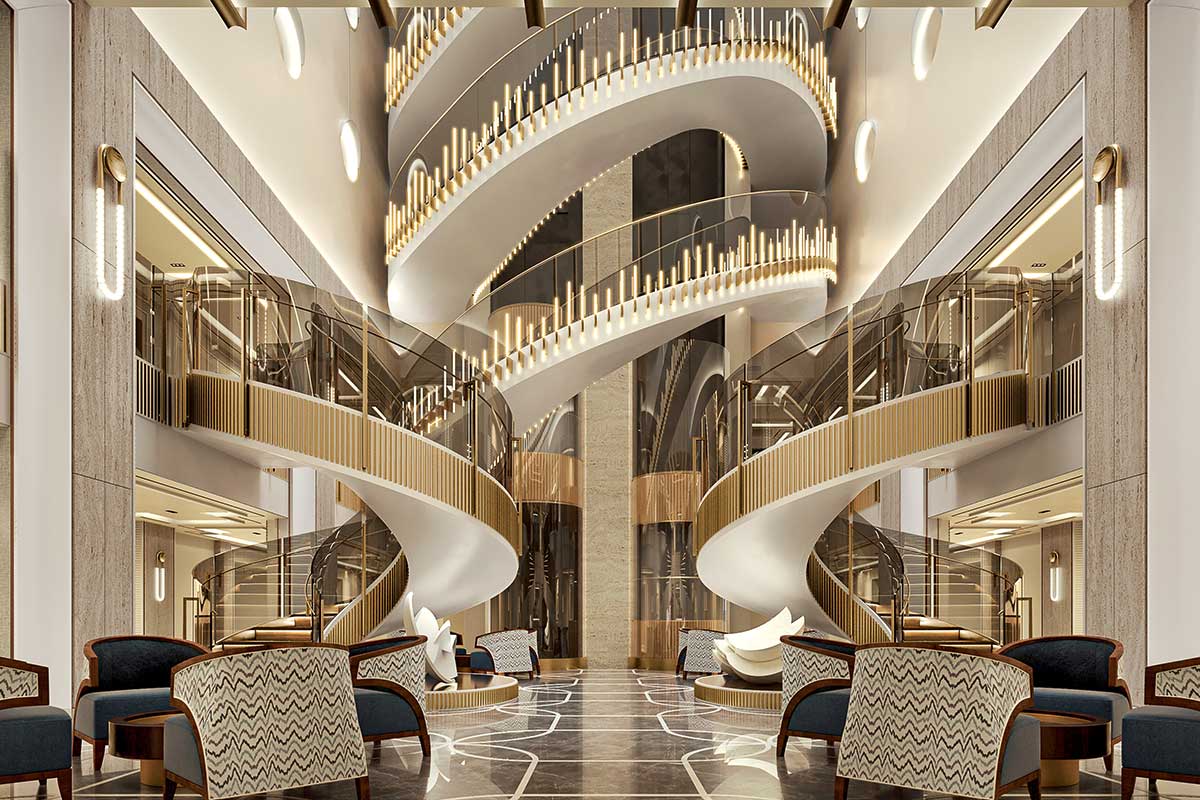 Die 77.000 Tonnen schwere Seven Seas Prestige bietet Platz für 822 Gäste und startet ihre Jungfernfahrt am 13. Dezember 2026 in Barcelona: eine 14-Nächte-Transatlantik-Reise nach Miami, mit Stopps in Málaga, Madeira und Tortola.