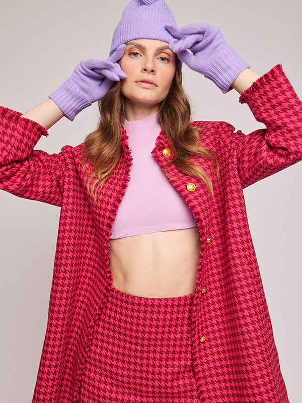 Die Manor Fashion Kollektion verbindet Siebziger-Charme mit zeitgemäßem Design: Hahnentritt-Muster, markante Farbkombinationen und strukturierte Stricktexturen schaffen vielseitige Herbst-Fits – von Capes über Rollkragen bis zu Layering-Looks für Herren.